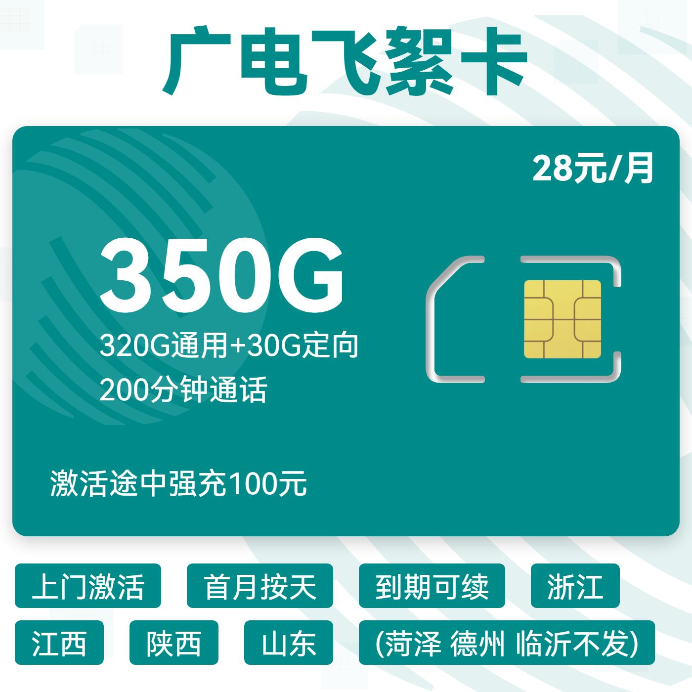 28元320G通用流量+30G定向流量+200分钟