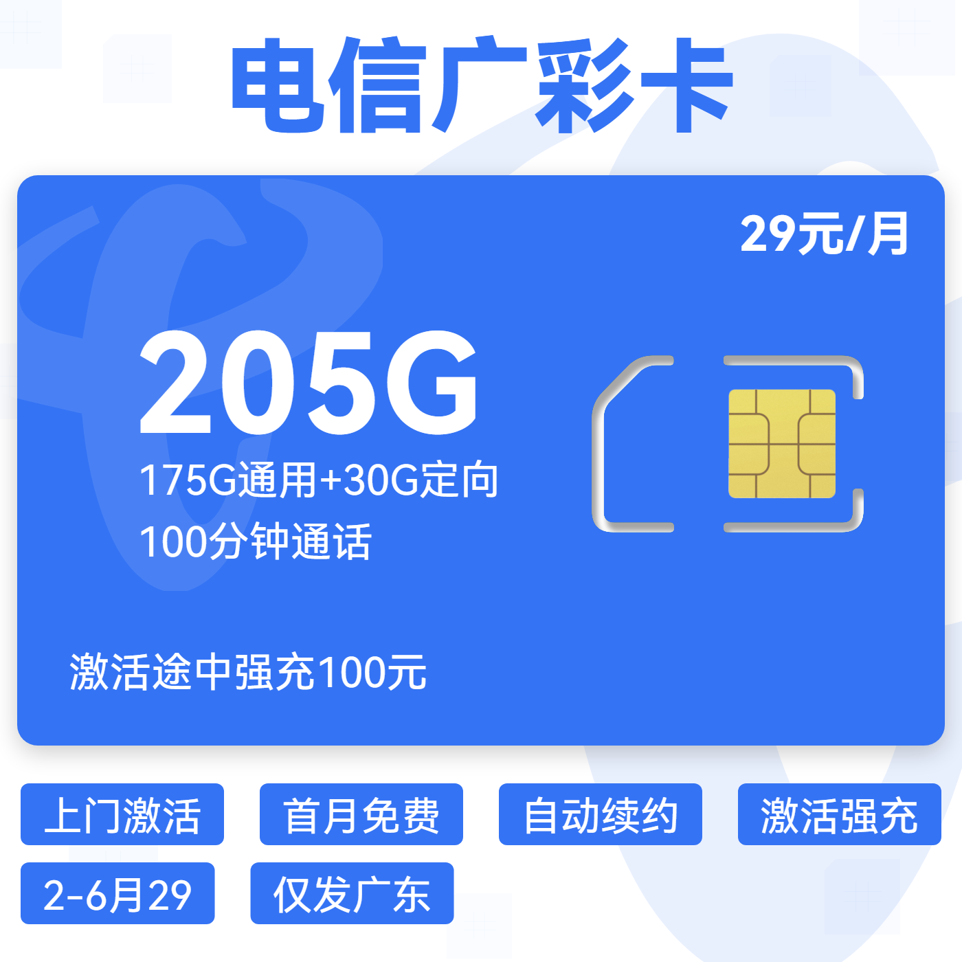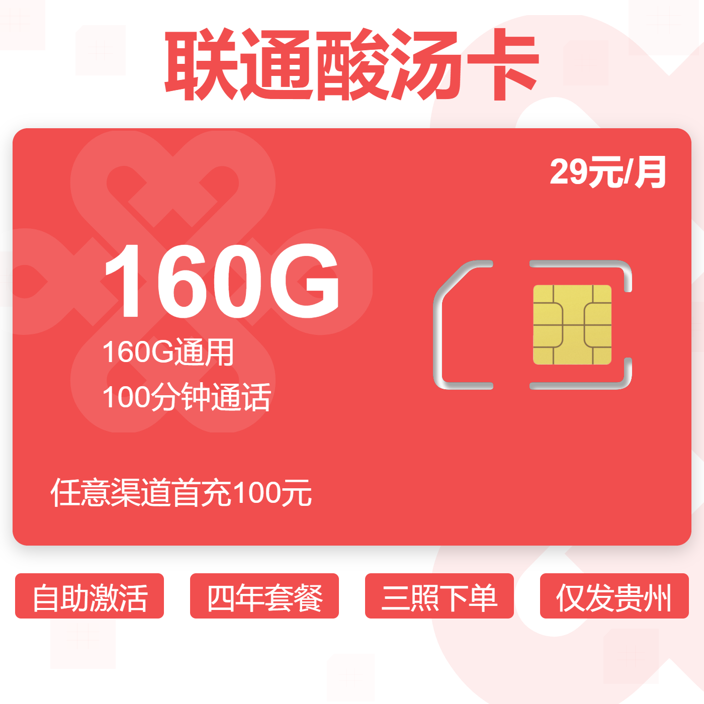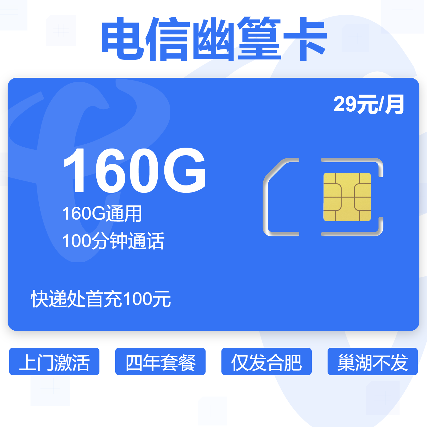 29元160G通用+100分钟+100条短信