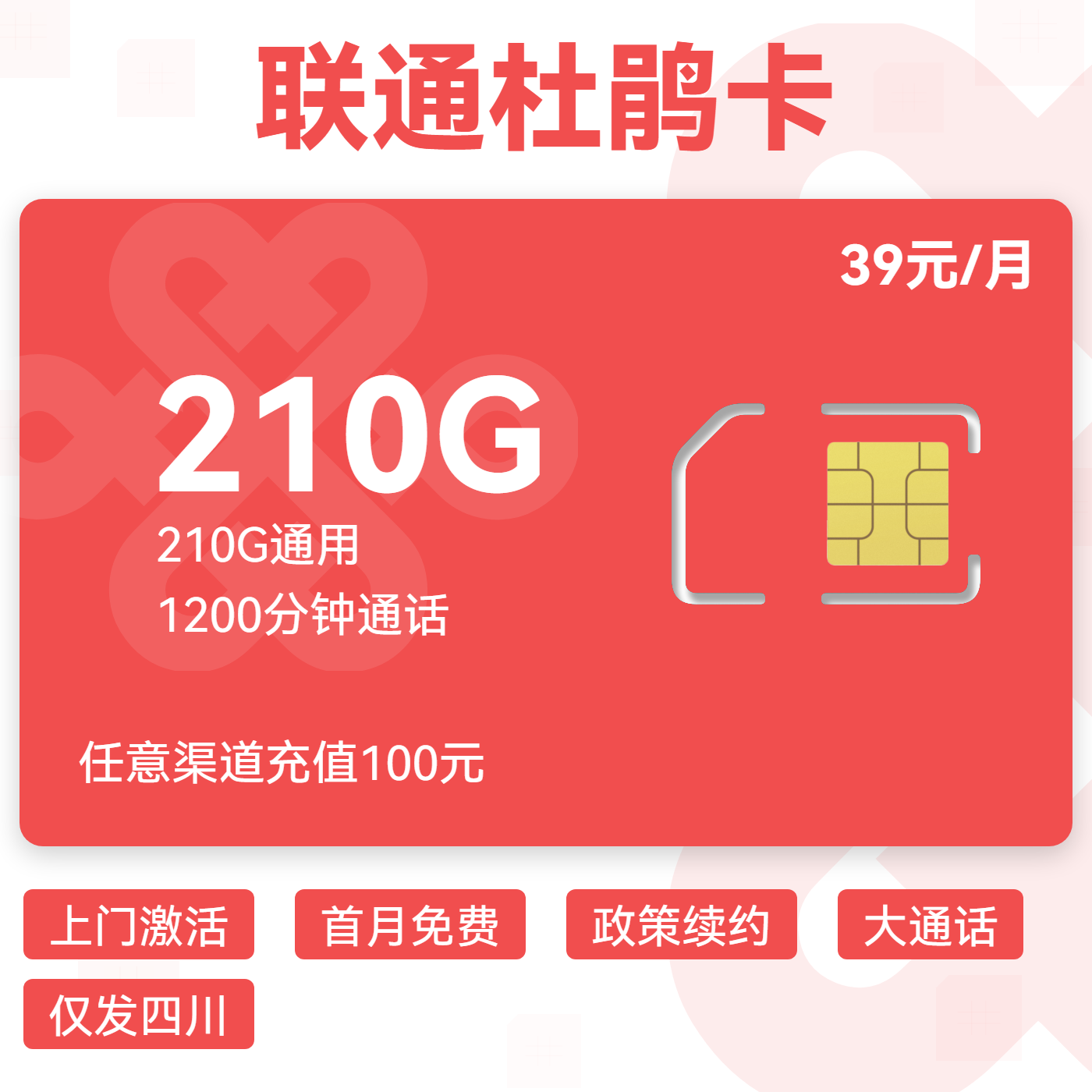 39元包210G通用+1200分钟