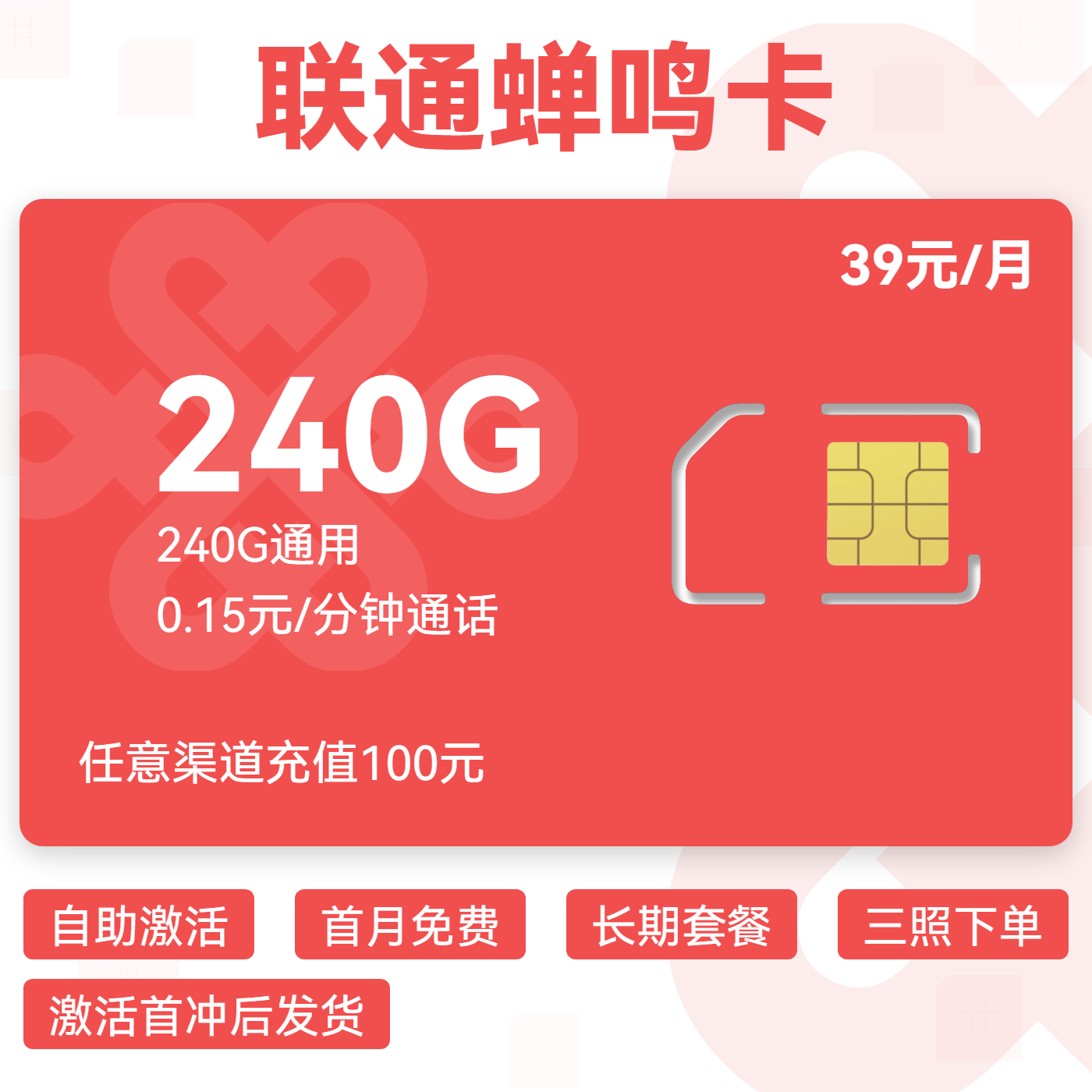 39元160G通用+100分钟+100条短信